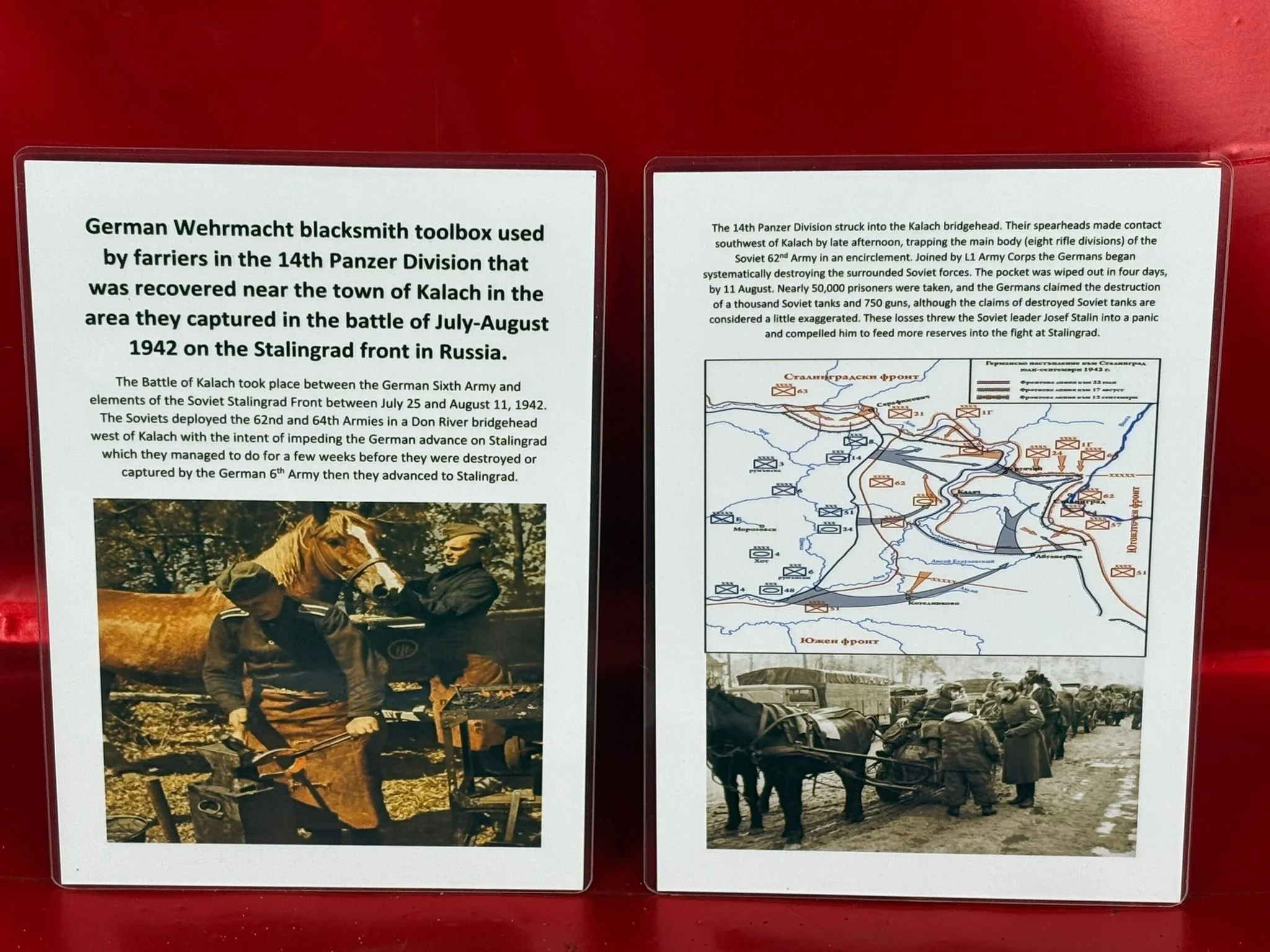 German Wehrmacht blacksmith toolbox with maker markings used by farriers in the 14th Panzer Division found in Kalach, the battle of July-August 1942 on the Stalingrad front in Russia.