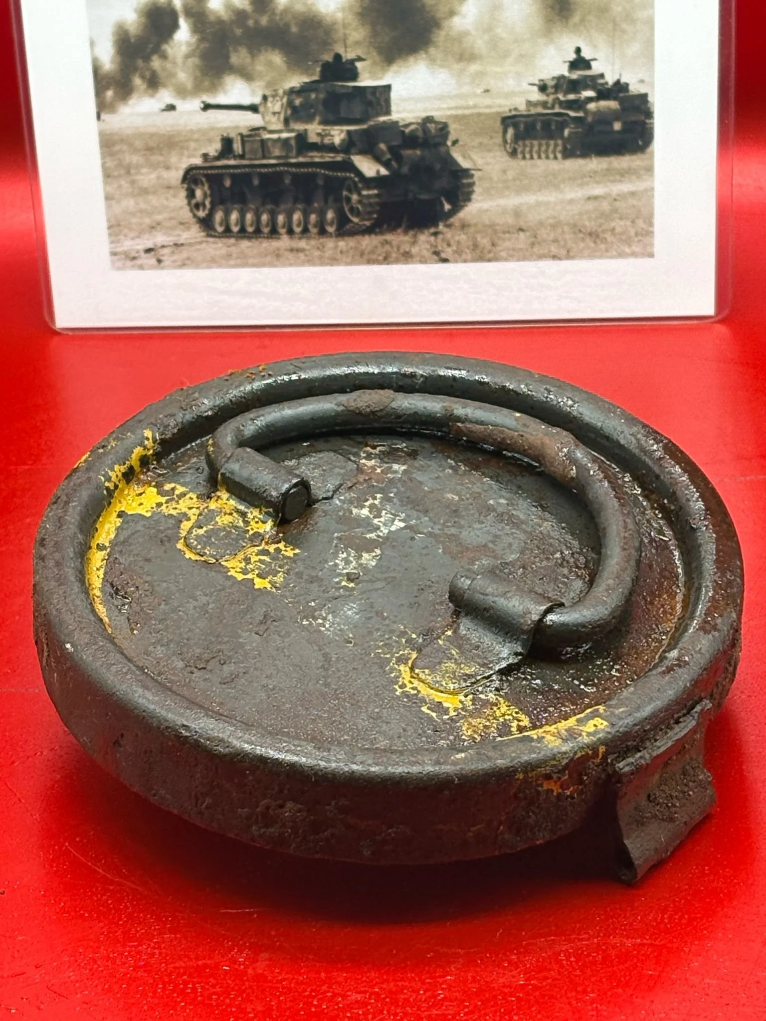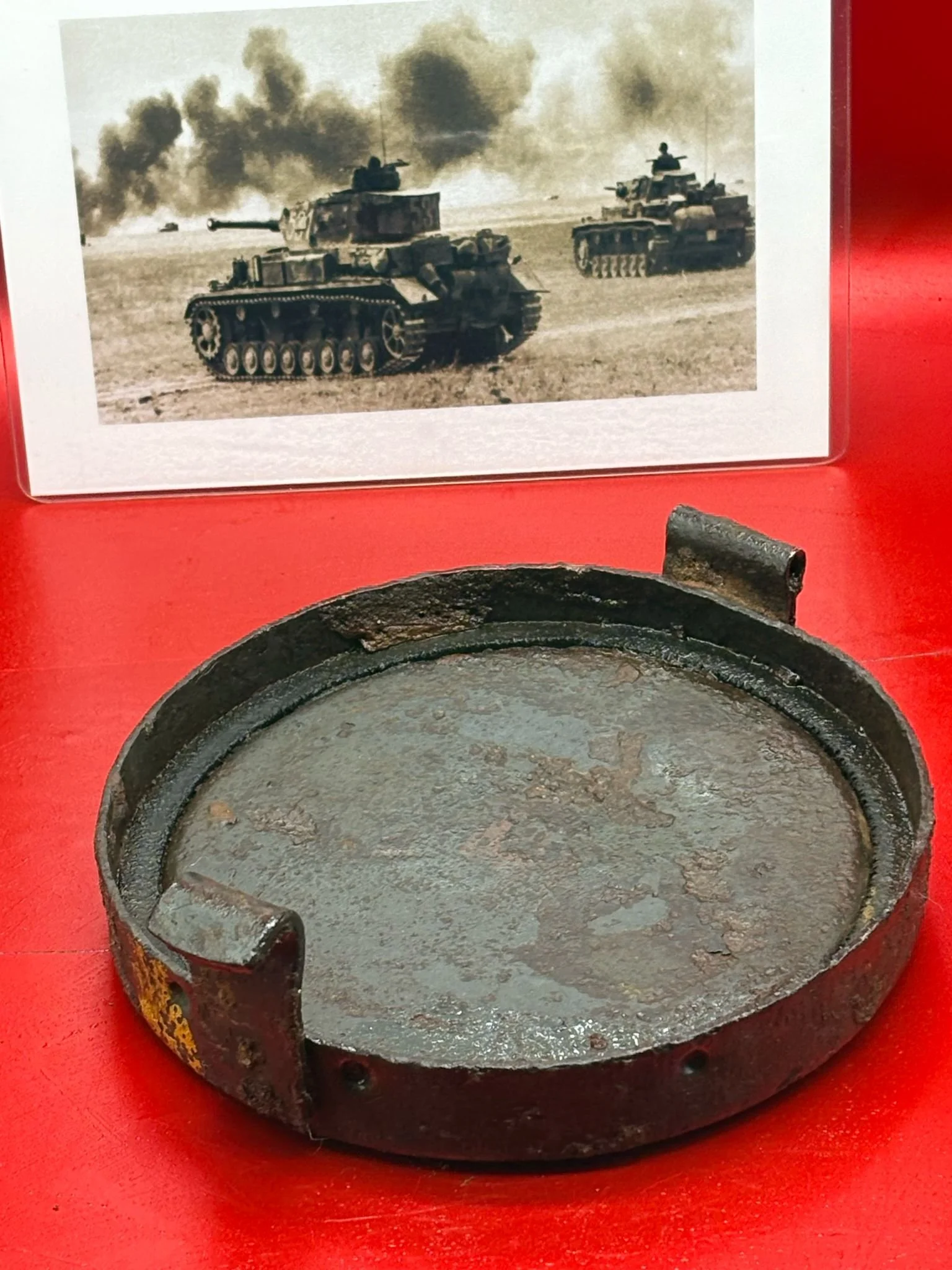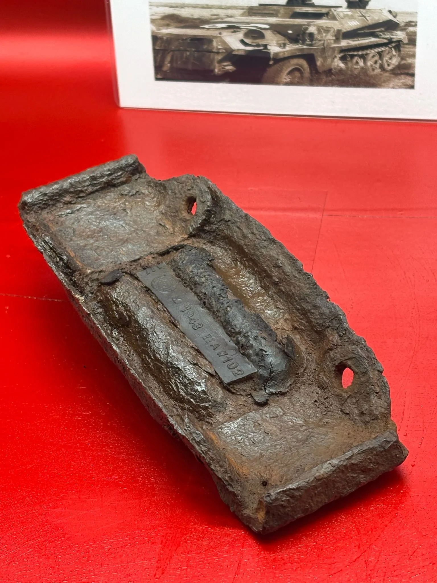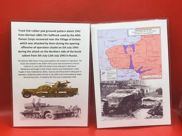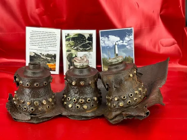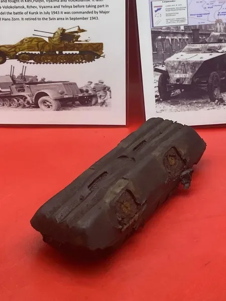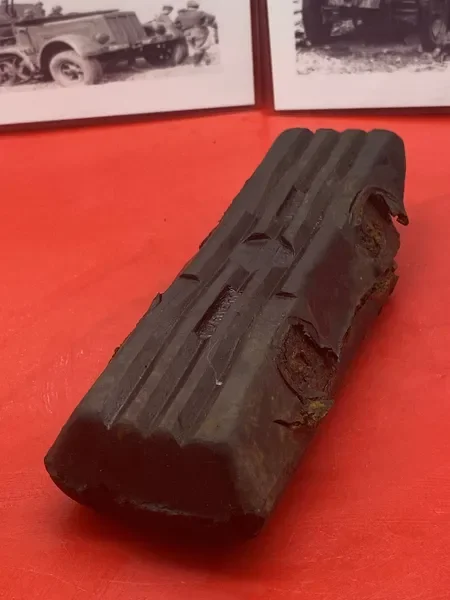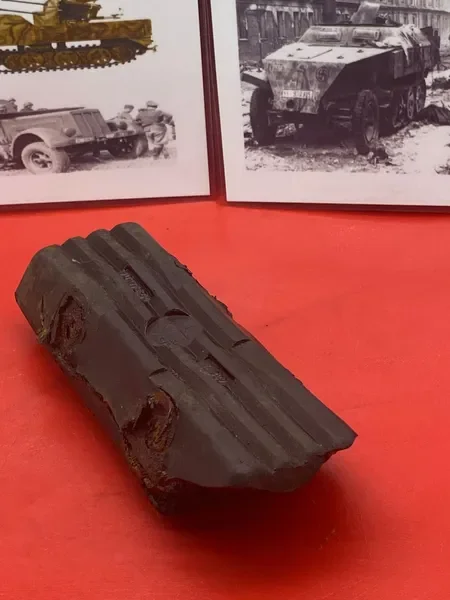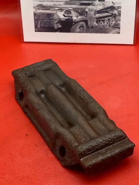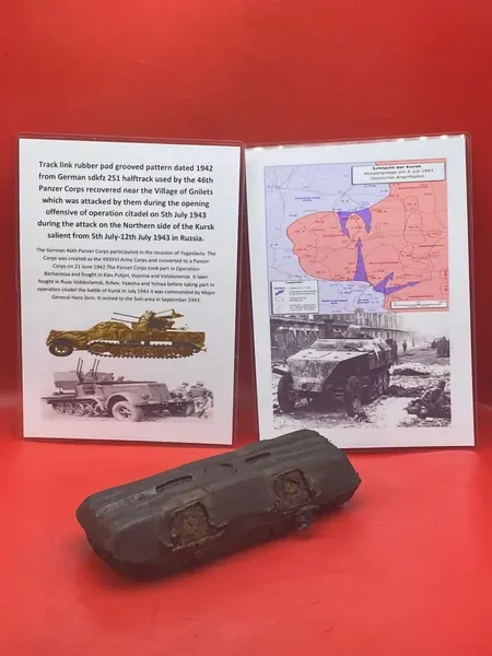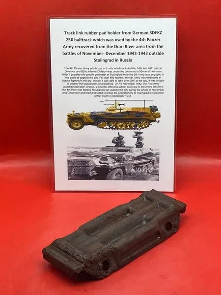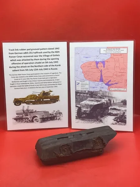 Categories: All WW2 Helmets, Badges, Belt Buckles, Medals, & Insignia WW2 Axis Aircraft Parts & Relics WW2 Allied Aircraft Parts & Relics WW2 Tank & Armoured Vehicle Parts Western Front WW2 Tank & Armoured Vehicle Parts Eastern Front WW2 Hand-Rifle Grenades, Mortar Bombs, Mines, Rockets WW2 Wooden & Metal Ammunition Crates, Boxes, & Tubes WW2 Artillery Shells, Fuses, Cases, & Projectiles WW2 Battlefield Relics West Front, Africa 1939-1943 WW2 Battlefield Relics Western Front 1944-1945 WW2 Battlefield Relics Eastern Front 1939-1945 WW1 Steel Helmets, Bayonets, Grenades, & Mortars WW2 Kriegsmarine Naval Relics, & Pacific Relics WW1 & WW2 Uniform Paperwork Pictures WW1 Allied British & French Relics WW1 Axis German & Austro Hungarian Relics WW1 Artillery Shells, Fuses, & Ammunition Crates & Boxes Gift Voucher Shop All | WW2 Helmets, Badges, Belt Buckles, Medals, & Insignia | WW2 Axis Aircraft Parts & Relics | WW2 Allied Aircraft Parts & Relics | WW2 Tank & Armoured Vehicle Parts Western Front | WW2 Tank & Armoured Vehicle Parts Eastern Front | WW2 Hand-Rifle Grenades, Mortar Bombs, Mines, Rockets | WW2 Wooden & Metal Ammunition Crates, Boxes, & Tubes | WW2 Artillery Shells, Fuses, Cases, & Projectiles | WW2 Battlefield Relics West Front, Africa 1939-1943 | WW2 Battlefield Relics Western Front 1944-1945 | WW2 Battlefield Relics Eastern Front 1939-1945 | WW1 Steel Helmets, Bayonets, Grenades, & Mortars | WW2 Kriegsmarine Naval Relics, & Pacific Relics | WW1 & WW2 Uniform Paperwork Pictures | WW1 Allied British & French Relics | WW1 Axis German & Austro Hungarian Relics | WW1 Artillery Shells, Fuses, & Ammunition Crates & Boxes | Gift Voucher | Track link grooved pattern rubber pad dated 1942, damaged used by German SDKFZ 251 half-track of the 46th Panzer Corps on the 1943 Kursk battlefield. £18.00 Only 1 available Track link grooved pattern rubber pad dated 1942, nice condition used by German SDKFZ 251 half-track of the 46th Panzer Corps on the 1943 Kursk battlefield. £25.00 Only 1 available Track link rubber pad remains used on German SDKFZ 250 halftrack used by the 4th Panzer Army along the Don River, November 1942 Stalingrad £22.00 Only 1 available Lid from shell carry tube for a KwK40 high explosive shell used on a Panzer IV tank of the 46th Panzer Corps recovered on the Kursk battlefield 1943 £25.00 Only 1 available Track link rubber pad, damaged maker marked dated 1943 from a German SDKFZ 250 halftrack used by the 46th Panzer Corps recovered from the Kursk battlefield of 1943 £22.00 Only 1 available Track link rubber pad,maker marked dated 1943 from a German SDKFZ 250 halftrack used by the 46th Panzer Corps recovered from the Kursk battlefield of 1943 £25.00 Only 1 available German vehicle number plate, relic condition recovered from Death Valley near Hill 112 during Operation Epsom in June 1944 on the Normandy £20.00 Only 1 available German IF-8 trailer outer wheel with sand camouflage paintwork remains recovered from the Moissey Ford area in the Falaise Pocket in Normandy 1944 £38.00 Only 1 available Glass framed maker label from the antenna on the Lichtenstein radar unit on German Messerschmitt ME110 number 2072,NJG 4/NJG4 shot down on 5th October 1942 crashed in the Ardennes £45.00 Only 1 available Large German vehicle jack used by car, lorry or armoured vehicle recovered near Trun in Falaise Pocket, Normandy 1944 £40.00 Only 1 available German complete Field telephone model 33 bakerlite case with original markings used by soldiers in the SS Totenkopf Division recovered from old German SS dugout in the Demyansk Pocket near Leningrad £40.00 Only 1 available German Wehrmacht large food rations crate with eagle originally used by the 26th Volksgrenadier Division and was recovered from the village of Bras, near Bastogne, Ardennes Forest 1944-1945 £65.00 Only 1 available Internal engine part large heavy cogg from 601 Daimler Benz engine on German Messerschmitt ME110 shot down on 16th August 1940, crashed Eastbourne in Battle of Britain £58.00 Only 1 available Very large armoured plate section with impact hit from German Junkers ju88-number 140556 shot down on 19th October in Finland £45.00 Only 1 available Glass framed lovely maker label from Russian Ilyushin Il-2 Sturmovik bomber of 5th Guards Army, which was shot down near the Psel river at Kursk £40.00 Only 1 available Fantastic condition semi-relic German 5cm mortar bomb Gr.W 36 transit case which recovered many years ago near the Town of Saint Vith in the Ardennes forest £75.00 Only 1 available Steel airframe section from a German V1 flying bomb recovered near the village of Marden, close to Maidstone in Kent in 1944 £40.00 Only 1 available Section of outer case and surround from the Burner cups in the combustion chamber from the engine on German V2 rocket fired at England on 10th September 1944. £35.00 Only 1 available Steel sections of wing spar or wing leading edge structure from on German V1 rocket recovered near village of Billum, Denmark, on 27th March 1945 £40.00 Only 1 available Large aluminium airframe structure part from a German V1 rocket recovered near village of Billum, Denmark, on 27th March 1945. £40.00 Only 1 available Internal parts from the fuel control system, some maker marked of a German V1 rocket recovered from village of Billum, Denmark, on 27th March 1945. £40.00 Only 1 available Fuel tank agitator remains with part numbers,maker marked recovered from German V1 rocket village of Billum, Denmark, on 27th March 1945. £35.00 Only 1 available Large airline pipework section from between round compressed air bottles from German V1 rocket crashed near village of Billum, Denmark, on 27th March 1945. £40.00 Only 1 available Steel made parts with paintwork from the tail plane at the back of a V1 rocket recovered from the crash site of a German V1 rocket that fell north of the village of Billum, Denmark, on 27th March 1945 £50.00 Only 1 available Russian SSH40 Helmet relic but with green paintwor