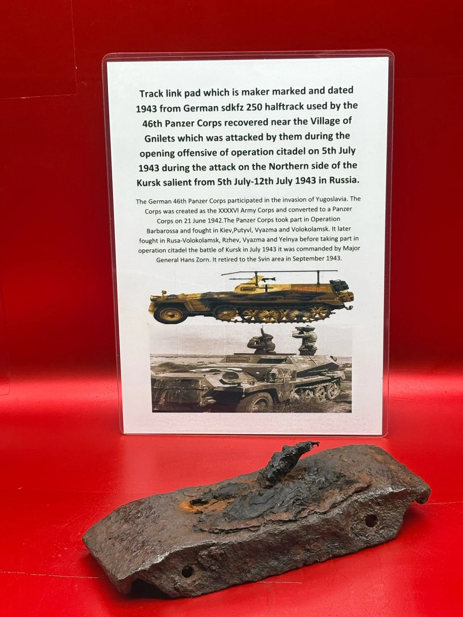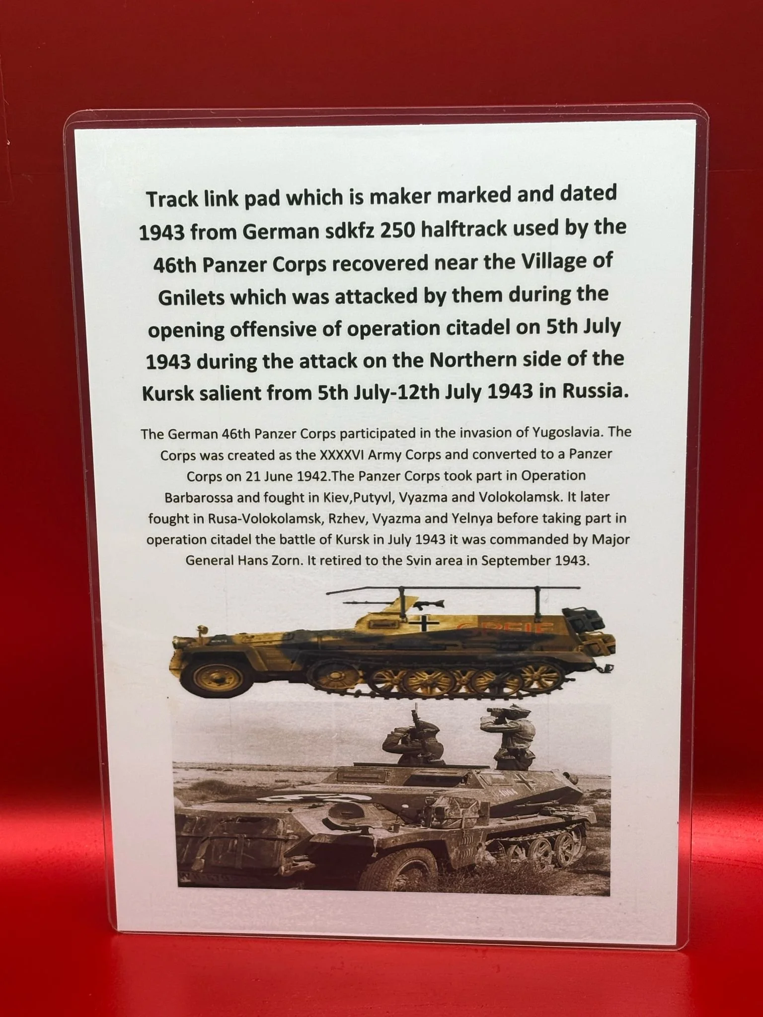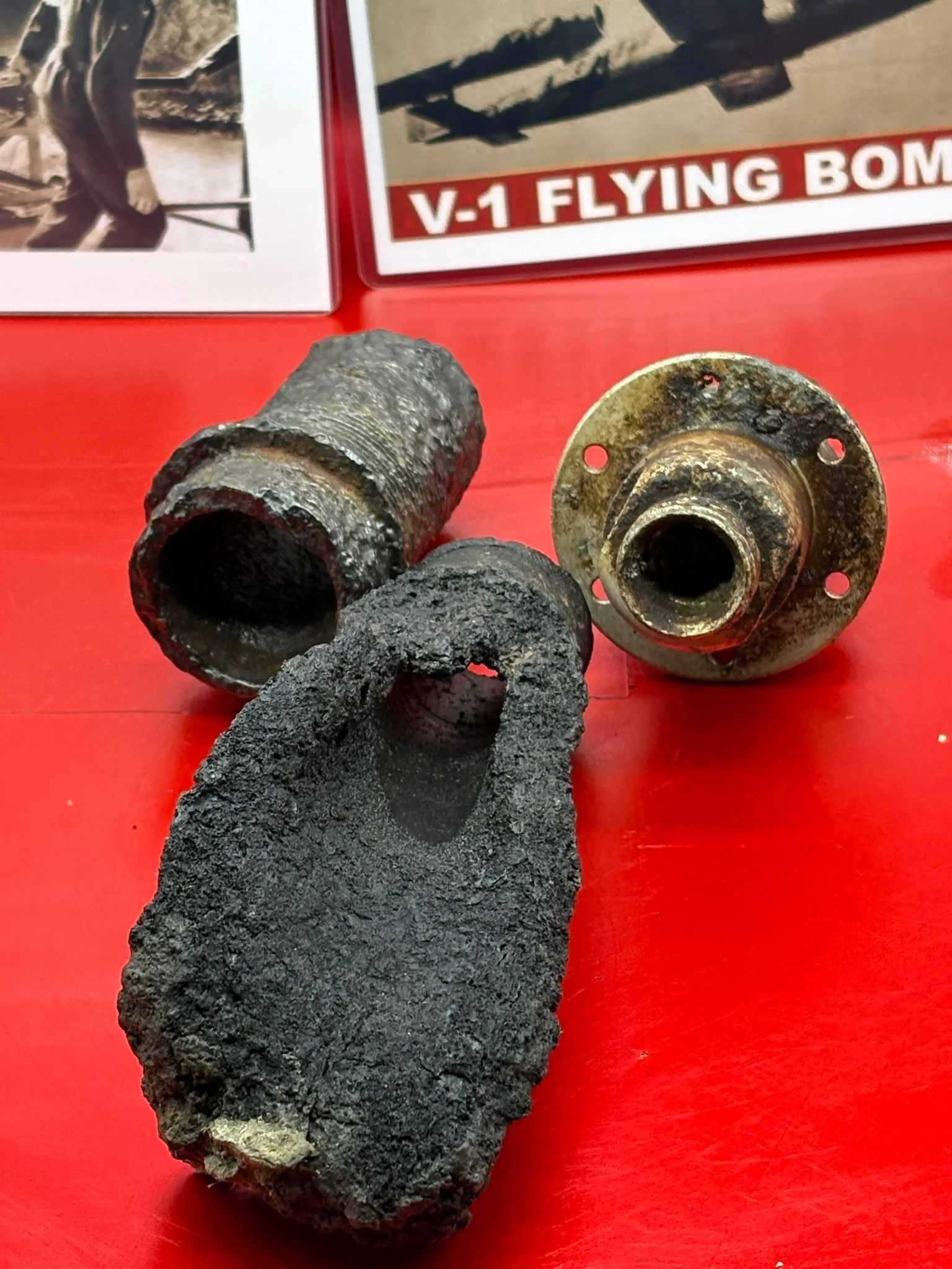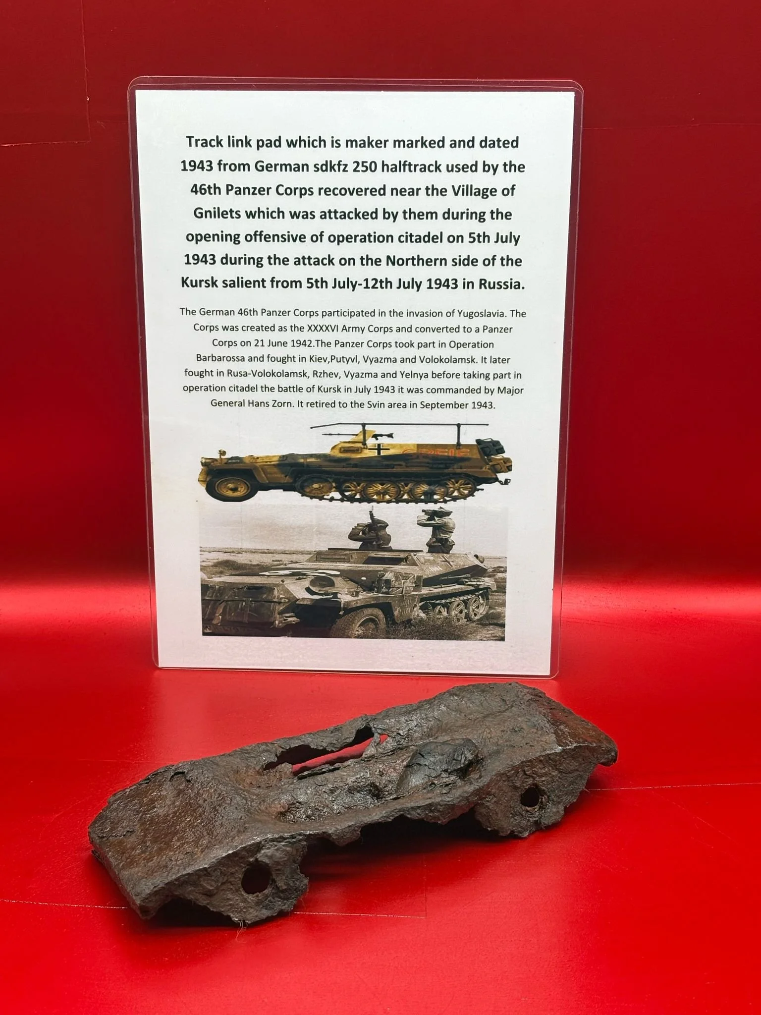 Categories: All WW2 Helmets, Badges, Belt Buckles, Medals, & Insignia WW2 Axis Aircraft Parts & Relics WW2 Allied Aircraft Parts & Relics WW2 Tank & Armoured Vehicle Parts Western Front WW2 Tank & Armoured Vehicle Parts Eastern Front WW2 Hand-Rifle Grenades, Mortar Bombs, Mines, Rockets WW2 Wooden & Metal Ammunition Crates, Boxes, & Tubes WW2 Artillery Shells, Fuses, Cases, & Projectiles WW2 Battlefield Relics West Front, Africa 1939-1943 WW2 Battlefield Relics Western Front 1944-1945 WW2 Battlefield Relics Eastern Front 1939-1945 WW1 Steel Helmets, Bayonets, Grenades, & Mortars WW2 Kriegsmarine Naval Relics, & Pacific Relics WW1 & WW2 Uniform Paperwork Pictures WW1 Allied British & French Relics WW1 Axis German & Austro Hungarian Relics WW1 Artillery Shells, Fuses, & Ammunition Crates & Boxes Gift Voucher Shop All | WW2 Helmets, Badges, Belt Buckles, Medals, & Insignia | WW2 Axis Aircraft Parts & Relics | WW2 Allied Aircraft Parts & Relics | WW2 Tank & Armoured Vehicle Parts Western Front | WW2 Tank & Armoured Vehicle Parts Eastern Front | WW2 Hand-Rifle Grenades, Mortar Bombs, Mines, Rockets | WW2 Wooden & Metal Ammunition Crates, Boxes, & Tubes | WW2 Artillery Shells, Fuses, Cases, & Projectiles | WW2 Battlefield Relics West Front, Africa 1939-1943 | WW2 Battlefield Relics Western Front 1944-1945 | WW2 Battlefield Relics Eastern Front 1939-1945 | WW1 Steel Helmets, Bayonets, Grenades, & Mortars | WW2 Kriegsmarine Naval Relics, & Pacific Relics | WW1 & WW2 Uniform Paperwork Pictures | WW1 Allied British & French Relics | WW1 Axis German & Austro Hungarian Relics | WW1 Artillery Shells, Fuses, & Ammunition Crates & Boxes | Gift Voucher | Track link grooved pattern rubber pad dated 1942, damaged used by German SDKFZ 251 half-track of the 46th Panzer Corps on the 1943 Kursk battlefield. £18.00 Only 1 available Track link grooved pattern rubber pad dated 1942, nice condition used by German SDKFZ 251 half-track of the 46th Panzer Corps on the 1943 Kursk battlefield. £25.00 Only 1 available Track link rubber pad remains used on German SDKFZ 250 halftrack used by the 4th Panzer Army along the Don River, November 1942 Stalingrad £22.00 Only 1 available Lid from shell carry tube for a KwK40 high explosive shell used on a Panzer IV tank of the 46th Panzer Corps recovered on the Kursk battlefield 1943 £25.00 Only 1 available Track link rubber pad, damaged maker marked dated 1943 from a German SDKFZ 250 halftrack used by the 46th Panzer Corps recovered from the Kursk battlefield of 1943 £22.00 Only 1 available Track link rubber pad,maker marked dated 1943 from a German SDKFZ 250 halftrack used by the 46th Panzer Corps recovered from the Kursk battlefield of 1943 £25.00 Only 1 available German vehicle number plate, relic condition recovered from Death Valley near Hill 112 during Operation Epsom in June 1944 on the Normandy £20.00 Only 1 available German IF-8 trailer outer wheel with sand camouflage paintwork remains recovered from the Moissey Ford area in the Falaise Pocket in Normandy 1944 £38.00 Only 1 available Glass framed maker label from the antenna on the Lichtenstein radar unit on German Messerschmitt ME110 number 2072,NJG 4/NJG4 shot down on 5th October 1942 crashed in the Ardennes £45.00 Only 1 available Large German vehicle jack used by car, lorry or armoured vehicle recovered near Trun in Falaise Pocket, Normandy 1944 £40.00 Only 1 available German complete Field telephone model 33 bakerlite case with original markings used by soldiers in the SS Totenkopf Division recovered from old German SS dugout in the Demyansk Pocket near Leningrad £40.00 Only 1 available German Wehrmacht large food rations crate with eagle originally used by the 26th Volksgrenadier Division and was recovered from the village of Bras, near Bastogne, Ardennes Forest 1944-1945 £65.00 Only 1 available Internal engine part large heavy cogg from 601 Daimler Benz engine on German Messerschmitt ME110 shot down on 16th August 1940, crashed Eastbourne in Battle of Britain £58.00 Only 1 available Very large armoured plate section with impact hit from German Junkers ju88-number 140556 shot down on 19th October in Finland £45.00 Only 1 available Glass framed lovely maker label from Russian Ilyushin Il-2 Sturmovik bomber of 5th Guards Army, which was shot down near the Psel river at Kursk £40.00 Only 1 available Fantastic condition semi-relic German 5cm mortar bomb Gr.W 36 transit case which recovered many years ago near the Town of Saint Vith in the Ardennes forest £75.00 Only 1 available Steel airframe section from a German V1 flying bomb recovered near the village of Marden, close to Maidstone in Kent in 1944 £40.00 Only 1 available Section of outer case and surround from the Burner cups in the combustion chamber from the engine on German V2 rocket fired at England on 10th September 1944. £35.00 Only 1 available Steel sections of wing spar or wing leading edge structure from on German V1 rocket recovered near village of Billum, Denmark, on 27th March 1945 £40.00 Only 1 available Large aluminium airframe structure part from a German V1 rocket recovered near village of Billum, Denmark, on 27th March 1945. £40.00 Only 1 available Internal parts from the fuel control system, some maker marked of a German V1 rocket recovered from village of Billum, Denmark, on 27th March 1945. £40.00 Only 1 available Fuel tank agitator remains with part numbers,maker marked recovered from German V1 rocket village of Billum, Denmark, on 27th March 1945. £35.00 Only 1 available Large airline pipework section from between round compressed air bottles from German V1 rocket crashed near village of Billum, Denmark, on 27th March 1945. £40.00 Only 1 available Steel made parts with paintwork from the tail plane at the back of a V1 rocket recovered from the crash site of a German V1 rocket that fell north of the village of Billum, Denmark, on 27th March 1945 £50.00 Only 1 available Russian SSH40 Helmet relic but with green paintwor