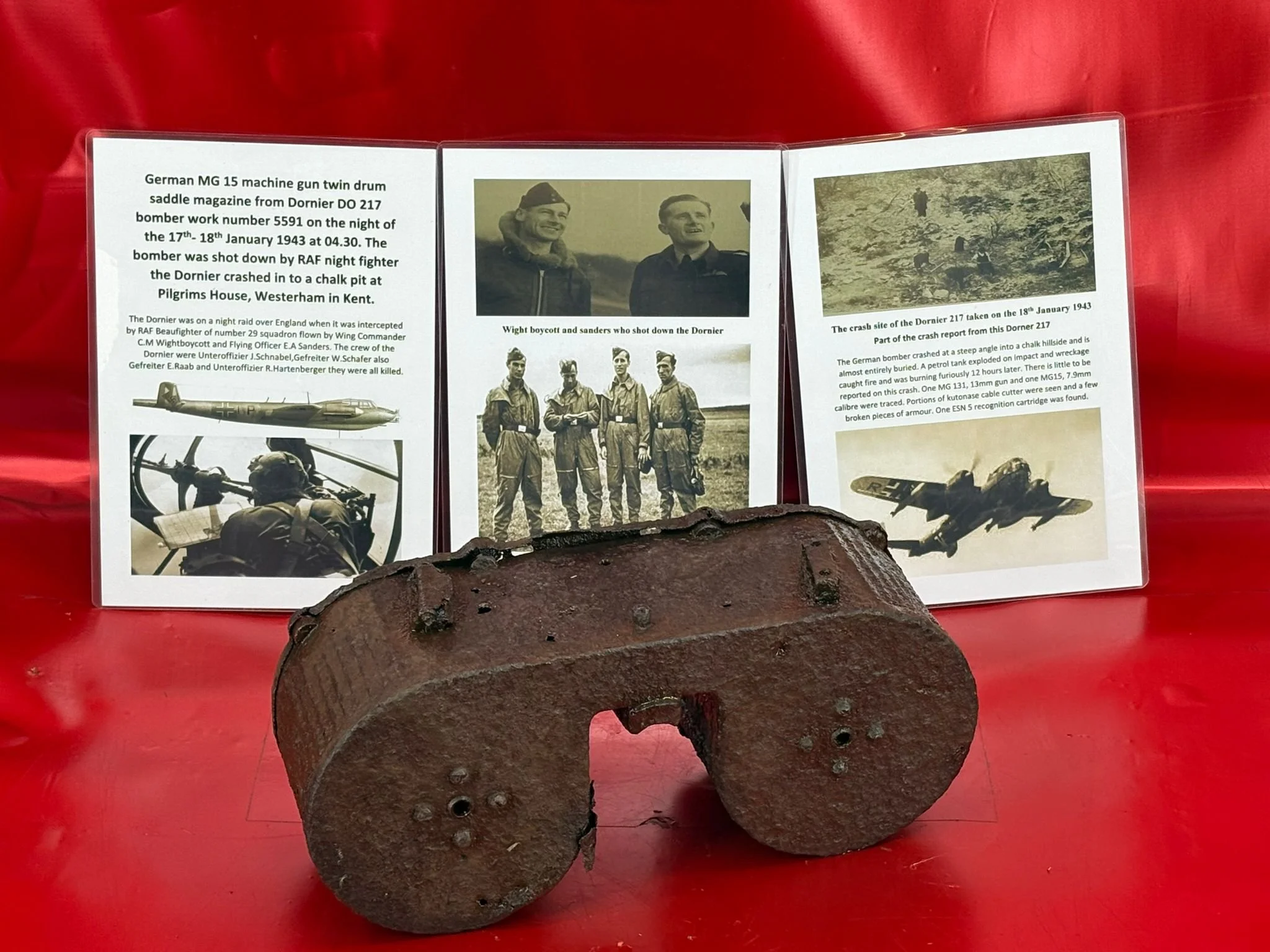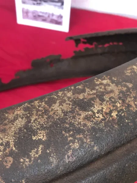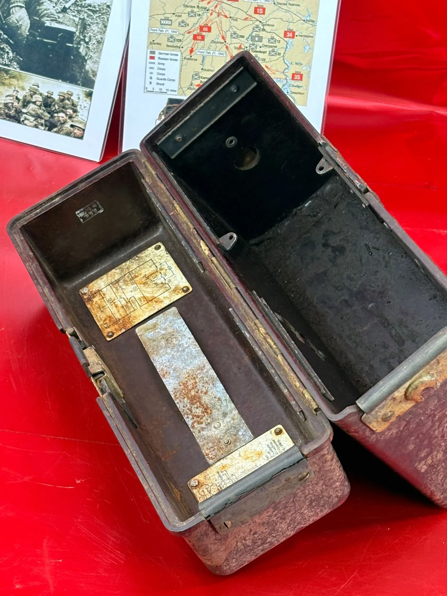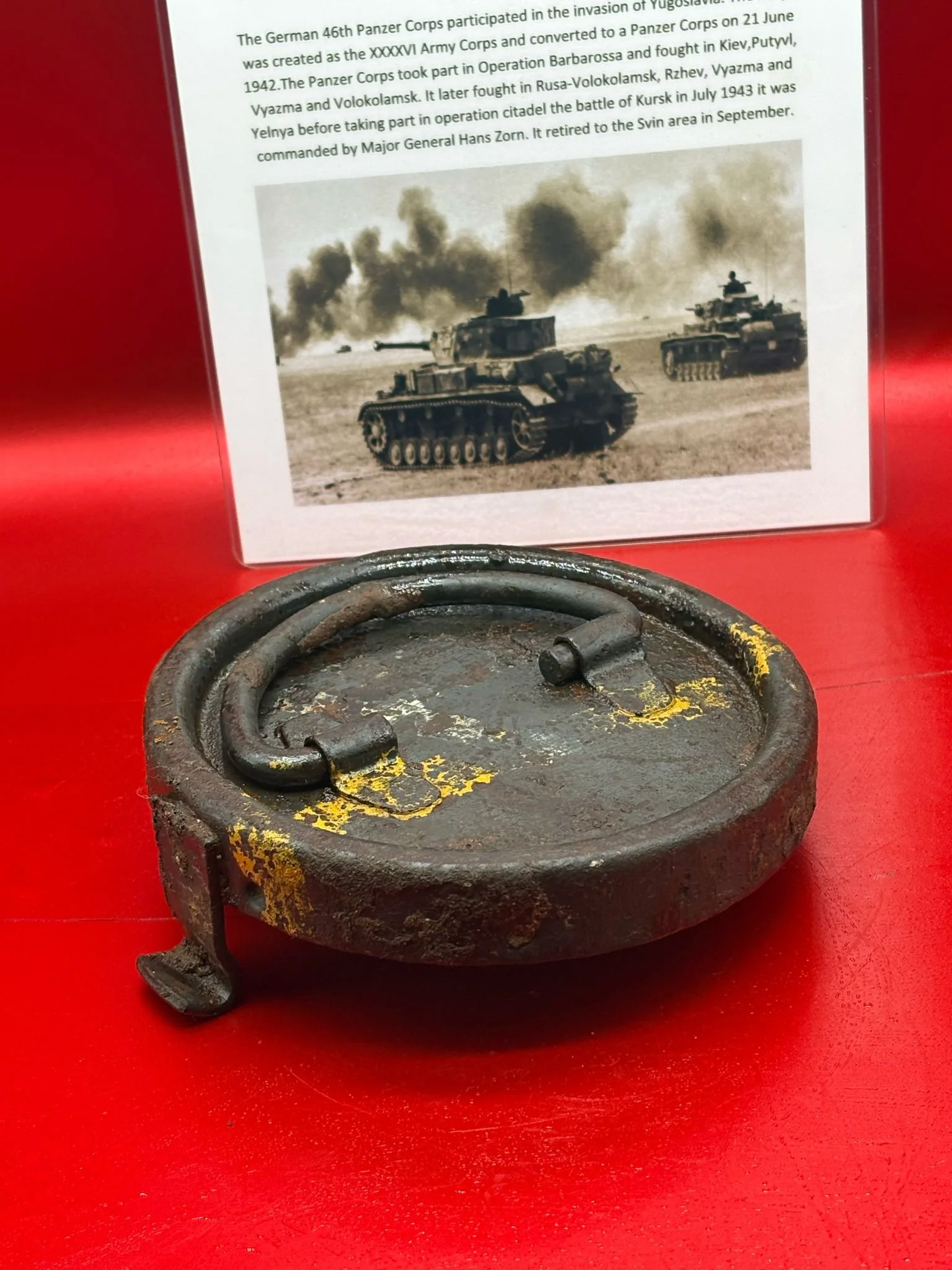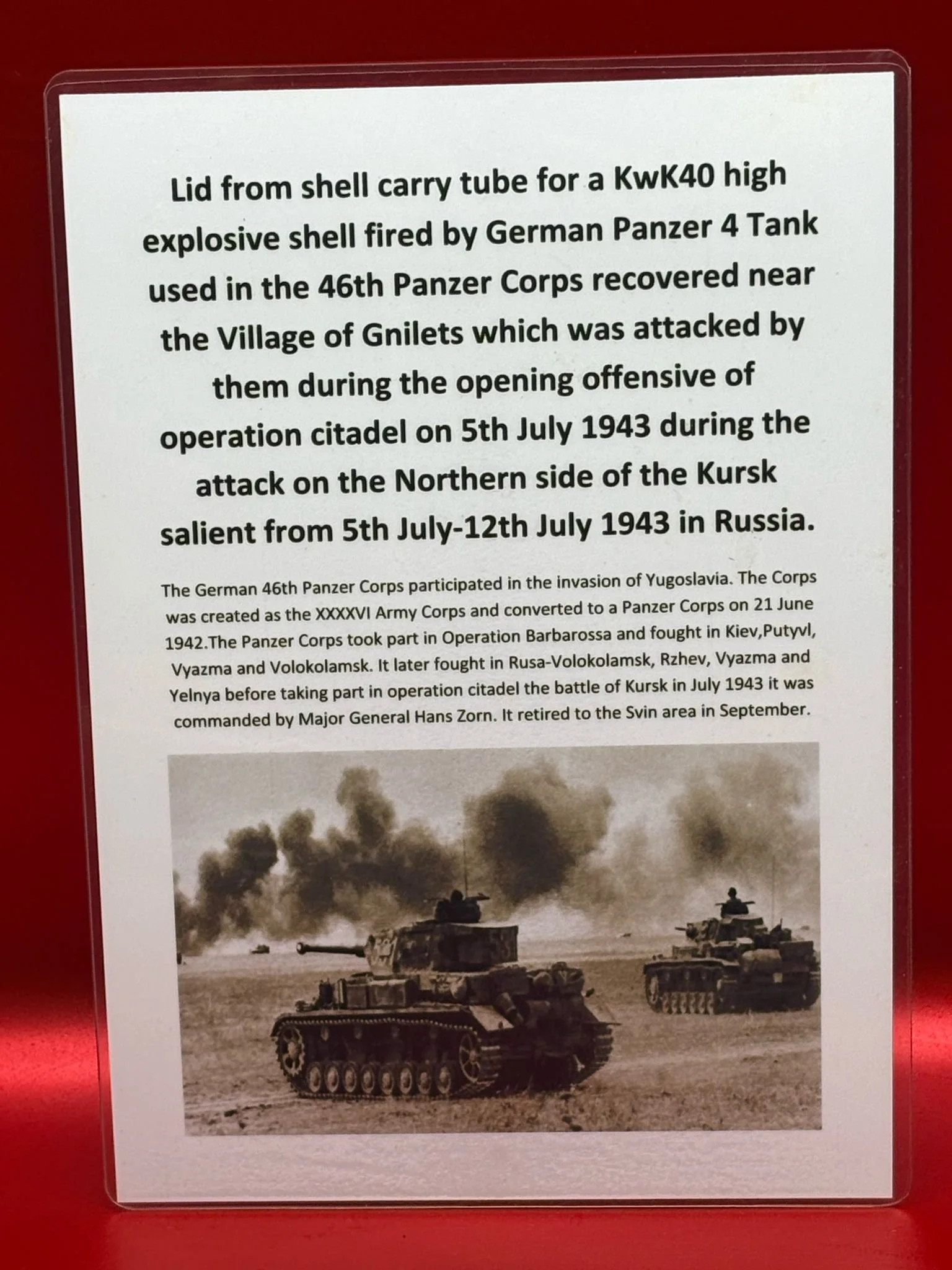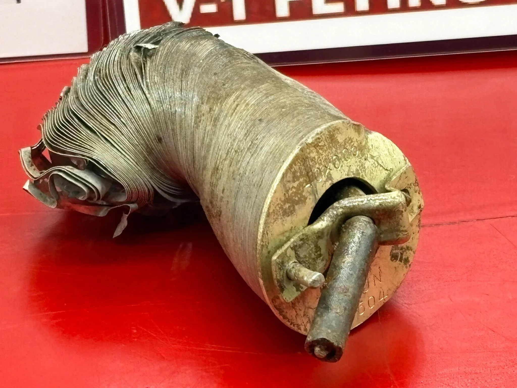 Categories: All WW2 Helmets, Badges, Belt Buckles, Medals, & Insignia WW2 Axis Aircraft Parts & Relics WW2 Allied Aircraft Parts & Relics WW2 Tank & Armoured Vehicle Parts Western Front WW2 Tank & Armoured Vehicle Parts Eastern Front WW2 Hand-Rifle Grenades, Mortar Bombs, Mines, Rockets WW2 Wooden & Metal Ammunition Crates, Boxes, & Tubes WW2 Artillery Shells, Fuses, Cases, & Projectiles WW2 Battlefield Relics West Front, Africa 1939-1943 WW2 Battlefield Relics Western Front 1944-1945 WW2 Battlefield Relics Eastern Front 1939-1945 WW1 Steel Helmets, Bayonets, Grenades, & Mortars WW2 Kriegsmarine Naval Relics, & Pacific Relics WW1 & WW2 Uniform Paperwork Pictures WW1 Allied British & French Relics WW1 Axis German & Austro Hungarian Relics WW1 Artillery Shells, Fuses, & Ammunition Crates & Boxes Gift Voucher Shop All | WW2 Helmets, Badges, Belt Buckles, Medals, & Insignia | WW2 Axis Aircraft Parts & Relics | WW2 Allied Aircraft Parts & Relics | WW2 Tank & Armoured Vehicle Parts Western Front | WW2 Tank & Armoured Vehicle Parts Eastern Front | WW2 Hand-Rifle Grenades, Mortar Bombs, Mines, Rockets | WW2 Wooden & Metal Ammunition Crates, Boxes, & Tubes | WW2 Artillery Shells, Fuses, Cases, & Projectiles | WW2 Battlefield Relics West Front, Africa 1939-1943 | WW2 Battlefield Relics Western Front 1944-1945 | WW2 Battlefield Relics Eastern Front 1939-1945 | WW1 Steel Helmets, Bayonets, Grenades, & Mortars | WW2 Kriegsmarine Naval Relics, & Pacific Relics | WW1 & WW2 Uniform Paperwork Pictures | WW1 Allied British & French Relics | WW1 Axis German & Austro Hungarian Relics | WW1 Artillery Shells, Fuses, & Ammunition Crates & Boxes | Gift Voucher | Track link grooved pattern rubber pad dated 1942, damaged used by German SDKFZ 251 half-track of the 46th Panzer Corps on the 1943 Kursk battlefield. £18.00 Only 1 available Track link grooved pattern rubber pad dated 1942, nice condition used by German SDKFZ 251 half-track of the 46th Panzer Corps on the 1943 Kursk battlefield. £25.00 Only 1 available Track link rubber pad remains used on German SDKFZ 250 halftrack used by the 4th Panzer Army along the Don River, November 1942 Stalingrad £22.00 Only 1 available Lid from shell carry tube for a KwK40 high explosive shell used on a Panzer IV tank of the 46th Panzer Corps recovered on the Kursk battlefield 1943 £25.00 Only 1 available Track link rubber pad, damaged maker marked dated 1943 from a German SDKFZ 250 halftrack used by the 46th Panzer Corps recovered from the Kursk battlefield of 1943 £22.00 Only 1 available Track link rubber pad,maker marked dated 1943 from a German SDKFZ 250 halftrack used by the 46th Panzer Corps recovered from the Kursk battlefield of 1943 £25.00 Only 1 available German vehicle number plate, relic condition recovered from Death Valley near Hill 112 during Operation Epsom in June 1944 on the Normandy £20.00 Only 1 available German IF-8 trailer outer wheel with sand camouflage paintwork remains recovered from the Moissey Ford area in the Falaise Pocket in Normandy 1944 £38.00 Only 1 available Glass framed maker label from the antenna on the Lichtenstein radar unit on German Messerschmitt ME110 number 2072,NJG 4/NJG4 shot down on 5th October 1942 crashed in the Ardennes £45.00 Only 1 available Large German vehicle jack used by car, lorry or armoured vehicle recovered near Trun in Falaise Pocket, Normandy 1944 £40.00 Only 1 available German complete Field telephone model 33 bakerlite case with original markings used by soldiers in the SS Totenkopf Division recovered from old German SS dugout in the Demyansk Pocket near Leningrad £40.00 Only 1 available German Wehrmacht large food rations crate with eagle originally used by the 26th Volksgrenadier Division and was recovered from the village of Bras, near Bastogne, Ardennes Forest 1944-1945 £65.00 Only 1 available Internal engine part large heavy cogg from 601 Daimler Benz engine on German Messerschmitt ME110 shot down on 16th August 1940, crashed Eastbourne in Battle of Britain £58.00 Only 1 available Very large armoured plate section with impact hit from German Junkers ju88-number 140556 shot down on 19th October in Finland £45.00 Only 1 available Glass framed lovely maker label from Russian Ilyushin Il-2 Sturmovik bomber of 5th Guards Army, which was shot down near the Psel river at Kursk £40.00 Only 1 available Fantastic condition semi-relic German 5cm mortar bomb Gr.W 36 transit case which recovered many years ago near the Town of Saint Vith in the Ardennes forest £75.00 Only 1 available Steel airframe section from a German V1 flying bomb recovered near the village of Marden, close to Maidstone in Kent in 1944 £40.00 Only 1 available Section of outer case and surround from the Burner cups in the combustion chamber from the engine on German V2 rocket fired at England on 10th September 1944. £35.00 Only 1 available Steel sections of wing spar or wing leading edge structure from on German V1 rocket recovered near village of Billum, Denmark, on 27th March 1945 £40.00 Only 1 available Large aluminium airframe structure part from a German V1 rocket recovered near village of Billum, Denmark, on 27th March 1945. £40.00 Only 1 available Internal parts from the fuel control system, some maker marked of a German V1 rocket recovered from village of Billum, Denmark, on 27th March 1945. £40.00 Only 1 available Fuel tank agitator remains with part numbers,maker marked recovered from German V1 rocket village of Billum, Denmark, on 27th March 1945. £35.00 Only 1 available Large airline pipework section from between round compressed air bottles from German V1 rocket crashed near village of Billum, Denmark, on 27th March 1945. £40.00 Only 1 available Steel made parts with paintwork from the tail plane at the back of a V1 rocket recovered from the crash site of a German V1 rocket that fell north of the village of Billum, Denmark, on 27th March 1945 £50.00 Only 1 available Russian SSH40 Helmet relic but with green paintwor